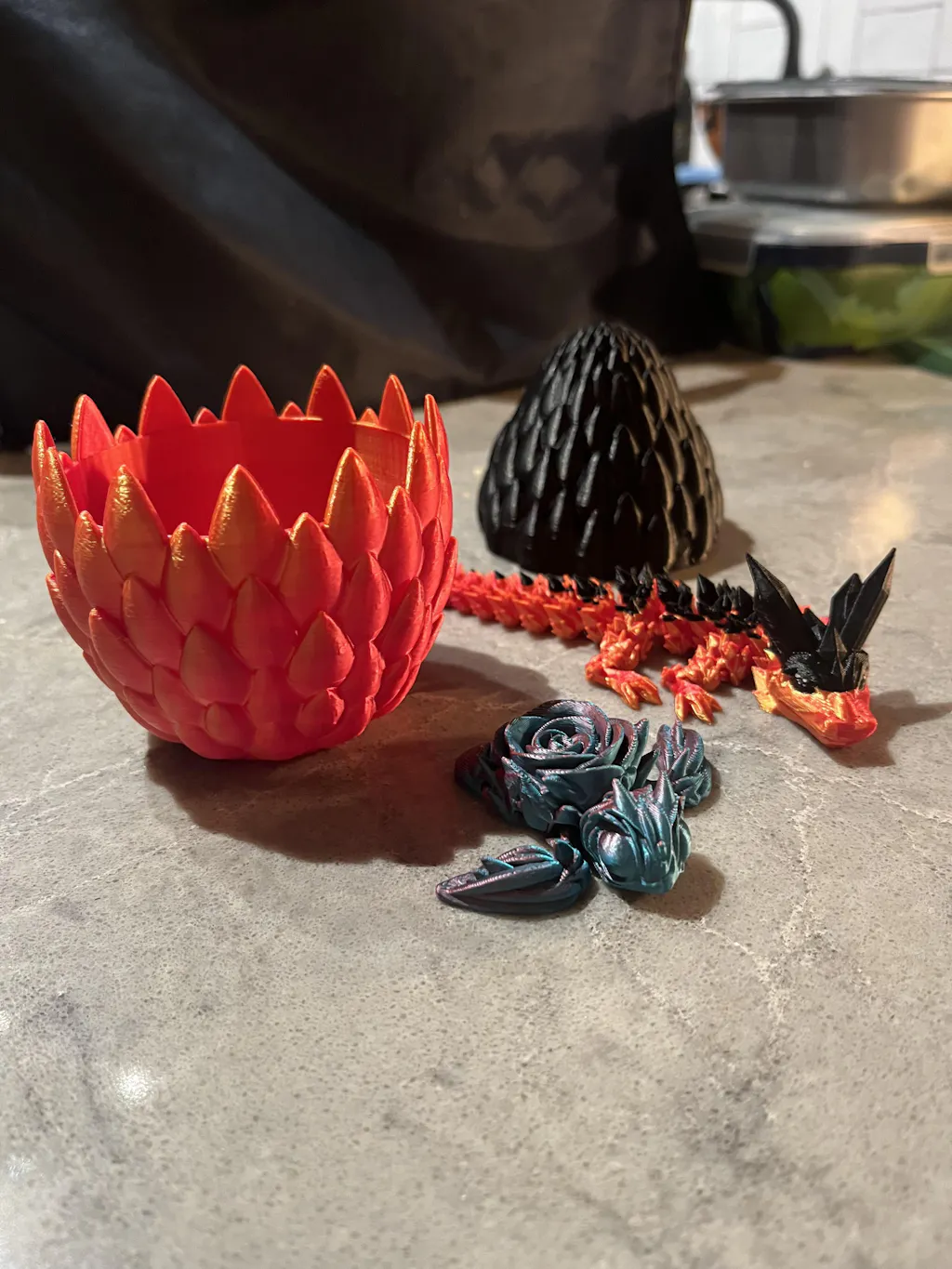 🐉 Every joint moves. Pick her up and each segment gives that satisfying click, one after the other. Run her through your fingers, flex her tail, curl her around your hand. She's the kind of thing you find yourself doing without thinking about it.