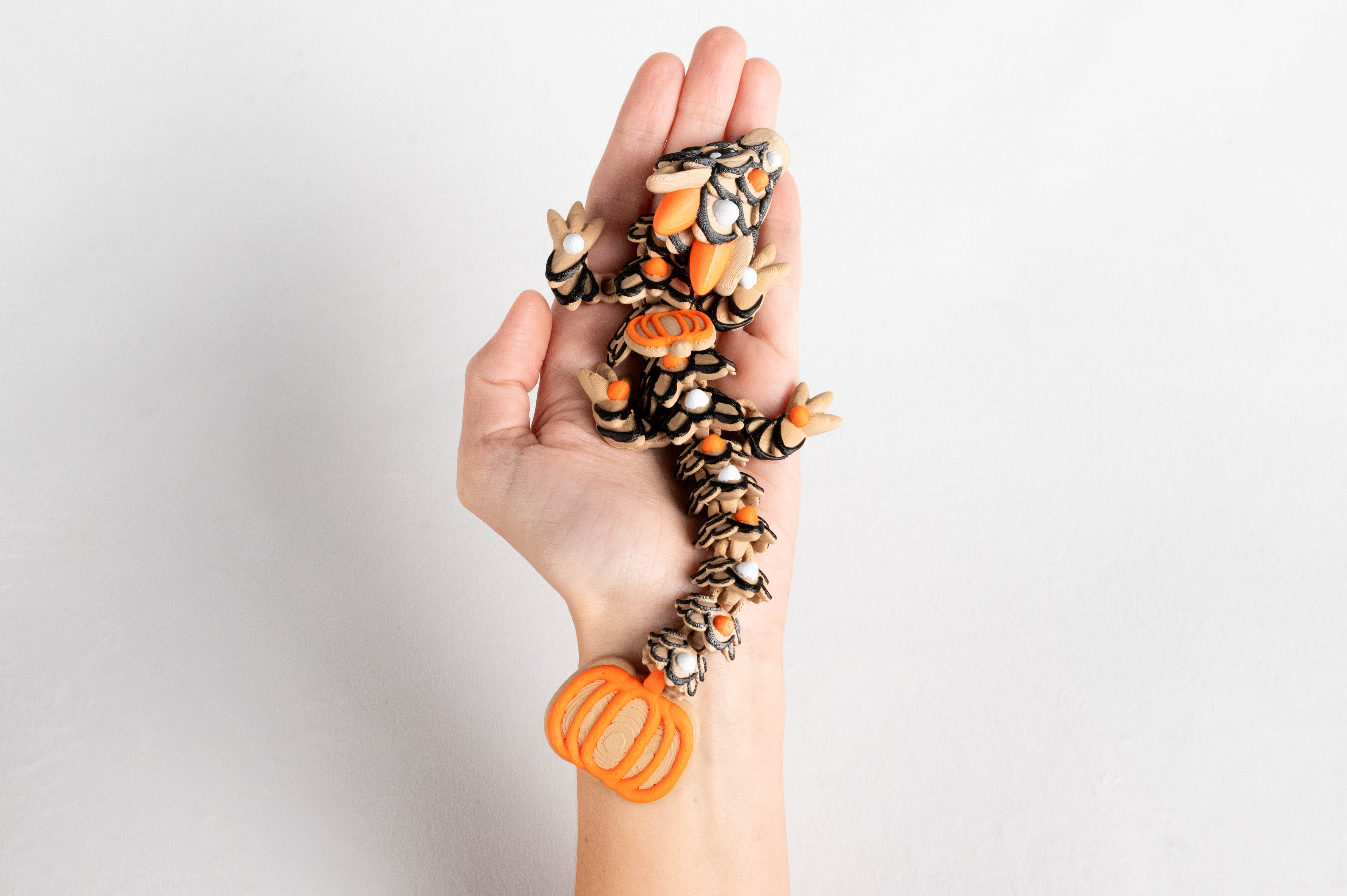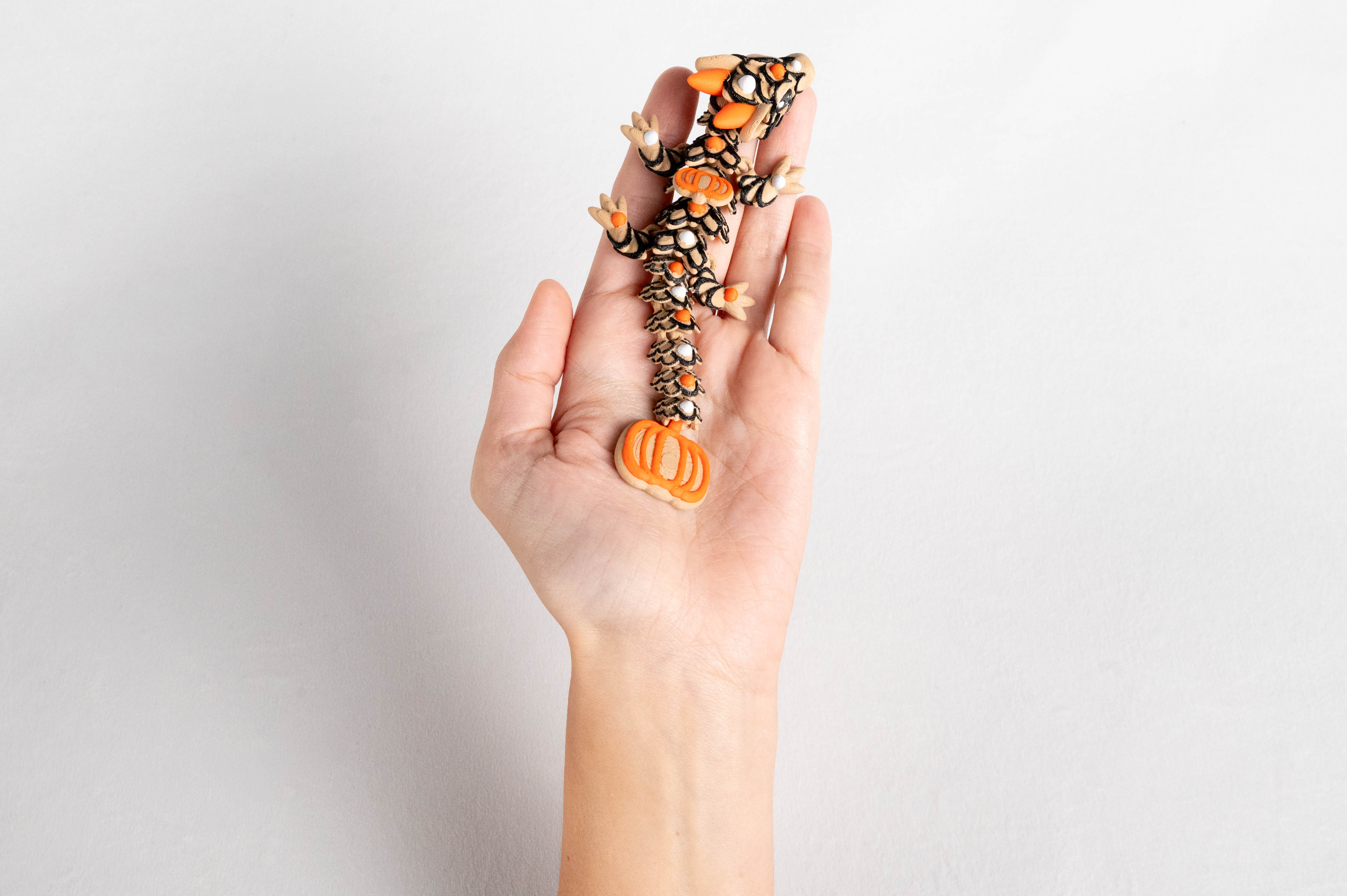 Fresh from the pumpkin patch, the Baby Pumpkin Cookie Dragon is ready to charm its new home. This detailed 3D printed fidget toy features fully articulated joints, allowing gentle motion and lifelike poses. With its pumpkin-spiced colours and playful spirit, it is the perfect Halloween Dragon Gift for anyone who loves dragons, fidget toys, and a touch of seasonal magic. 🎃