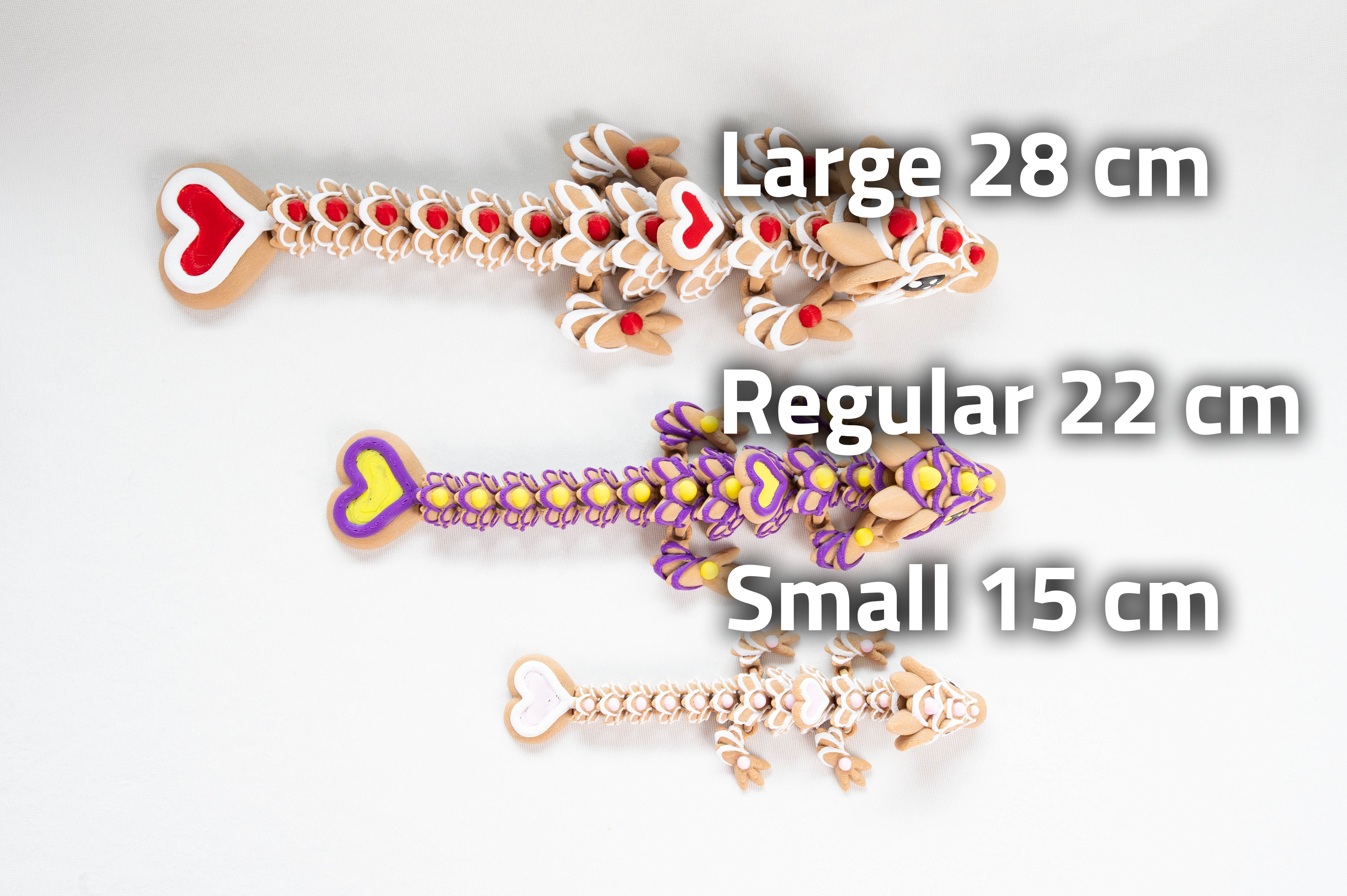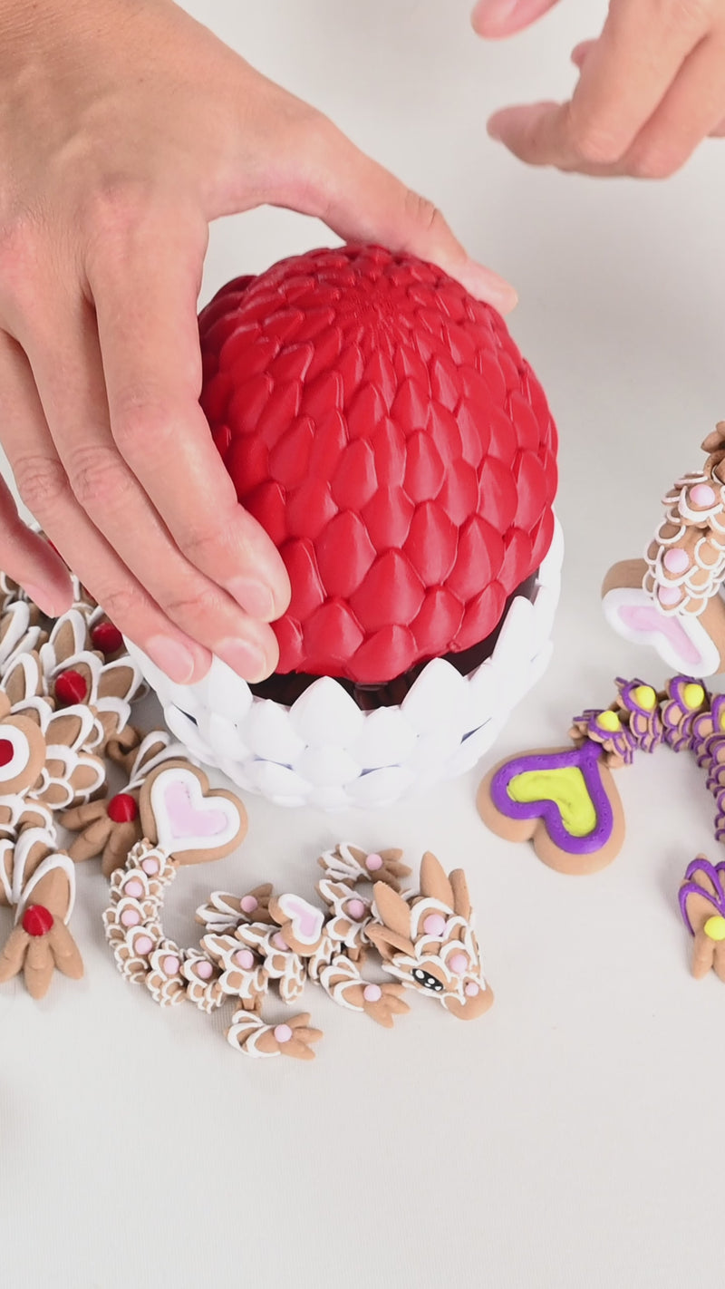 Heart Cookie Dragon Baby, a sweet baby dragon designed to delight collectors, gift-givers, and fidget lovers alike. This fully articulated 3D printed dragon moves smoothly from head to tail, making it perfect for gentle fidgeting, posing, or display.