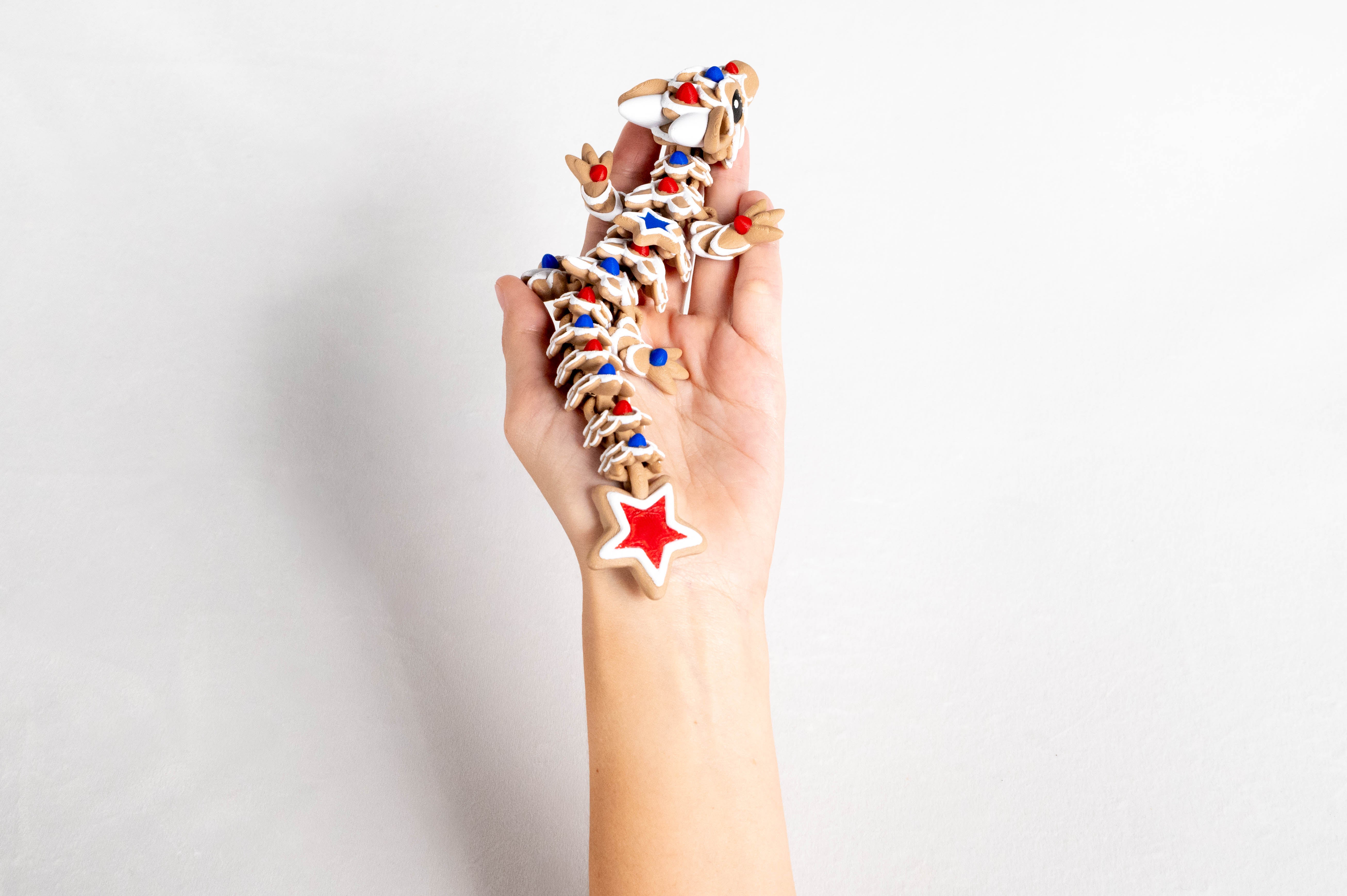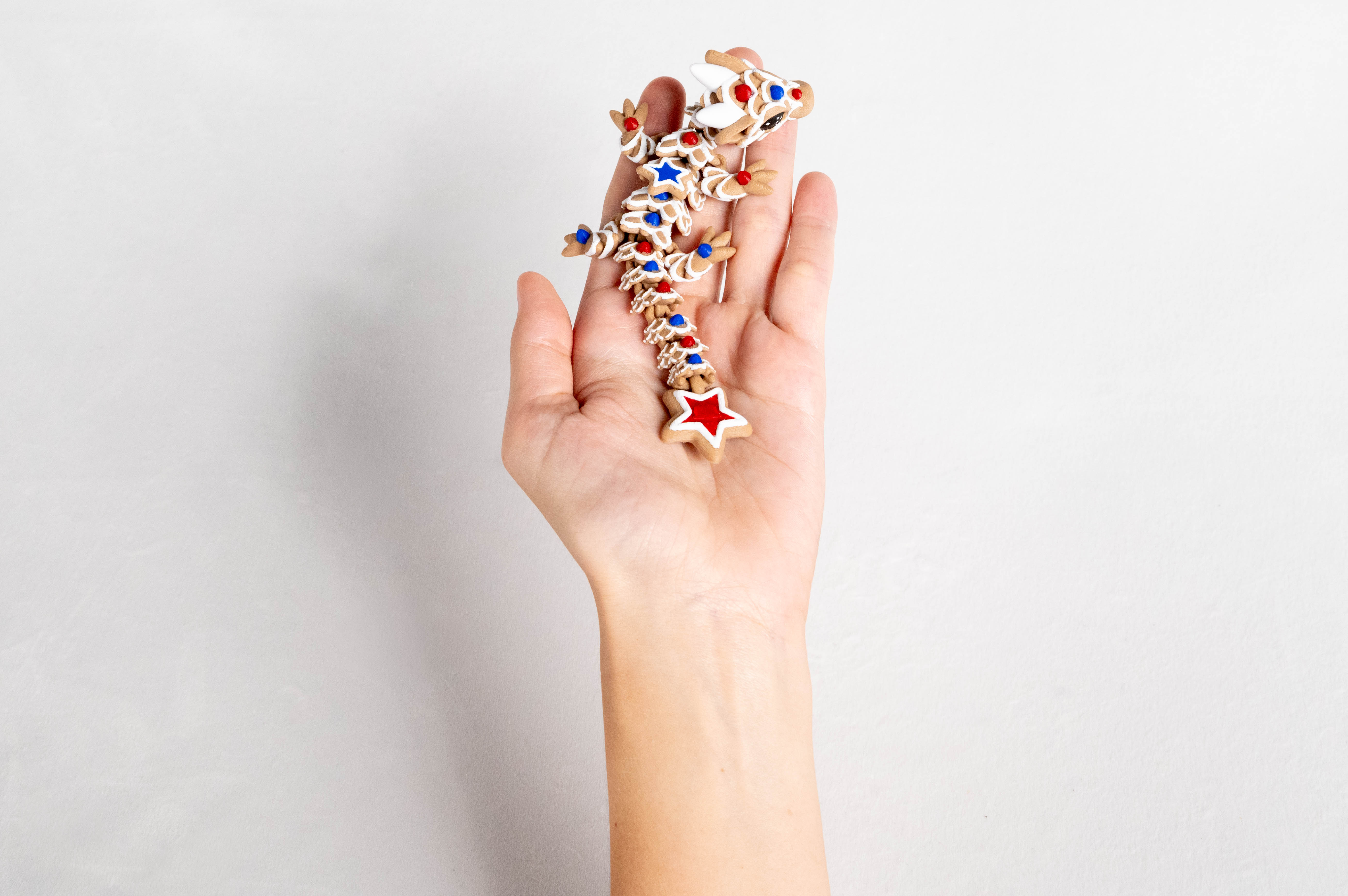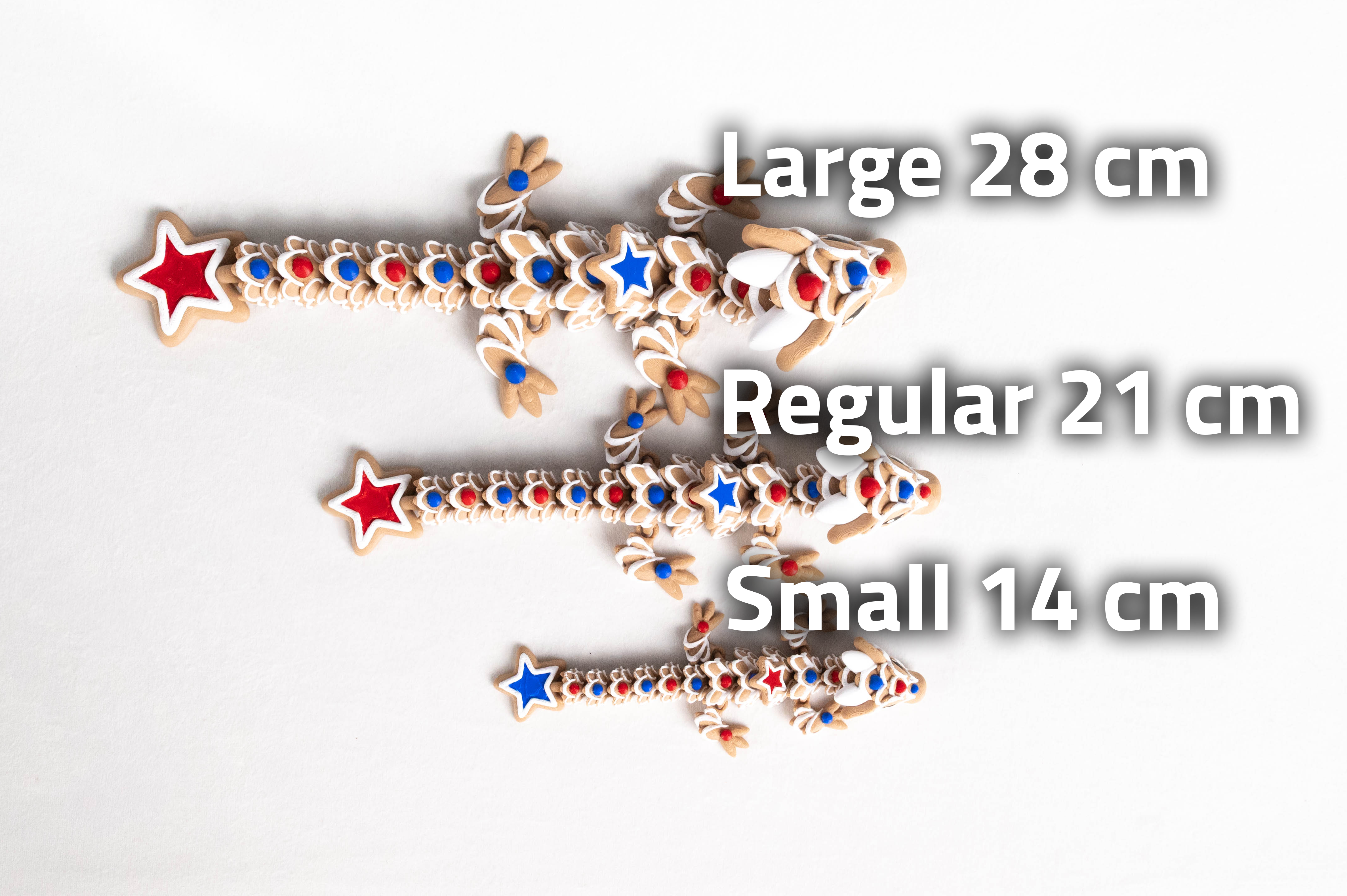 Straight from a twinkling cookie galaxy, the Baby Star Cookie Dragon is here to sprinkle starlight and sweetness wherever it lands. This detailed 3D printed fidget dragon features fully articulated joints for gentle movement and lifelike poses. Decorated with red and blue stars across its cookie body, it’s the perfect collectible gift for anyone who loves dragons, fidget toys, and a touch of celestial charm. 🌠